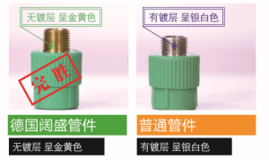 2、用你肉眼,先观察PPR管件上的金属件颜色。如果看到的是银白色,就表明有镀层,这样的铜件在与水接触后会释放重金属物质,污染水质。