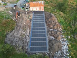 室外地热采集:铺设400平方米的地下集热场,由140组规格为200×100厘米的黑色管组成,埋深约80厘米。