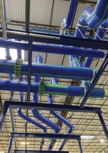 将一个近50000㎡的仓库改造成手套制造厂的过程中,阔盛管道扮演了重要角色。美国丁腈手套厂(American Nitrile plant)位于俄亥俄州格罗夫市,冷却水处理系统使用了4600m的阔盛蓝色管 ,最大尺寸为630mm。当工厂全面运转时,每年可生产36亿只手套。